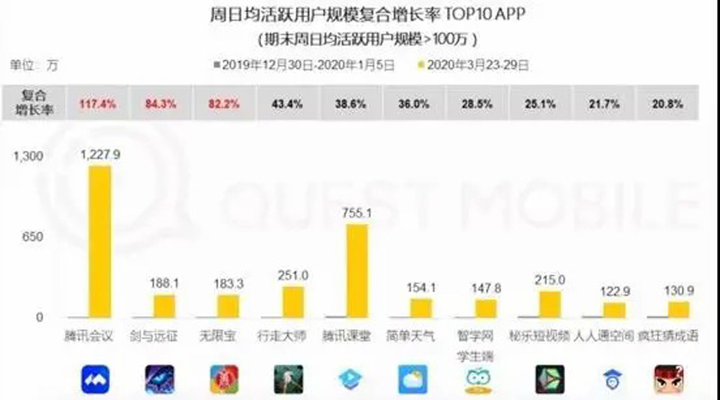 事實上,在產(chǎn)品增長方面,騰訊或許是此次疫情中最大的贏家,這背后源于它并非某款單一產(chǎn)品的崛起,而是多款產(chǎn)品齊頭并進——小程序、企業(yè)微信、騰訊會議、騰訊課堂、和平精英……