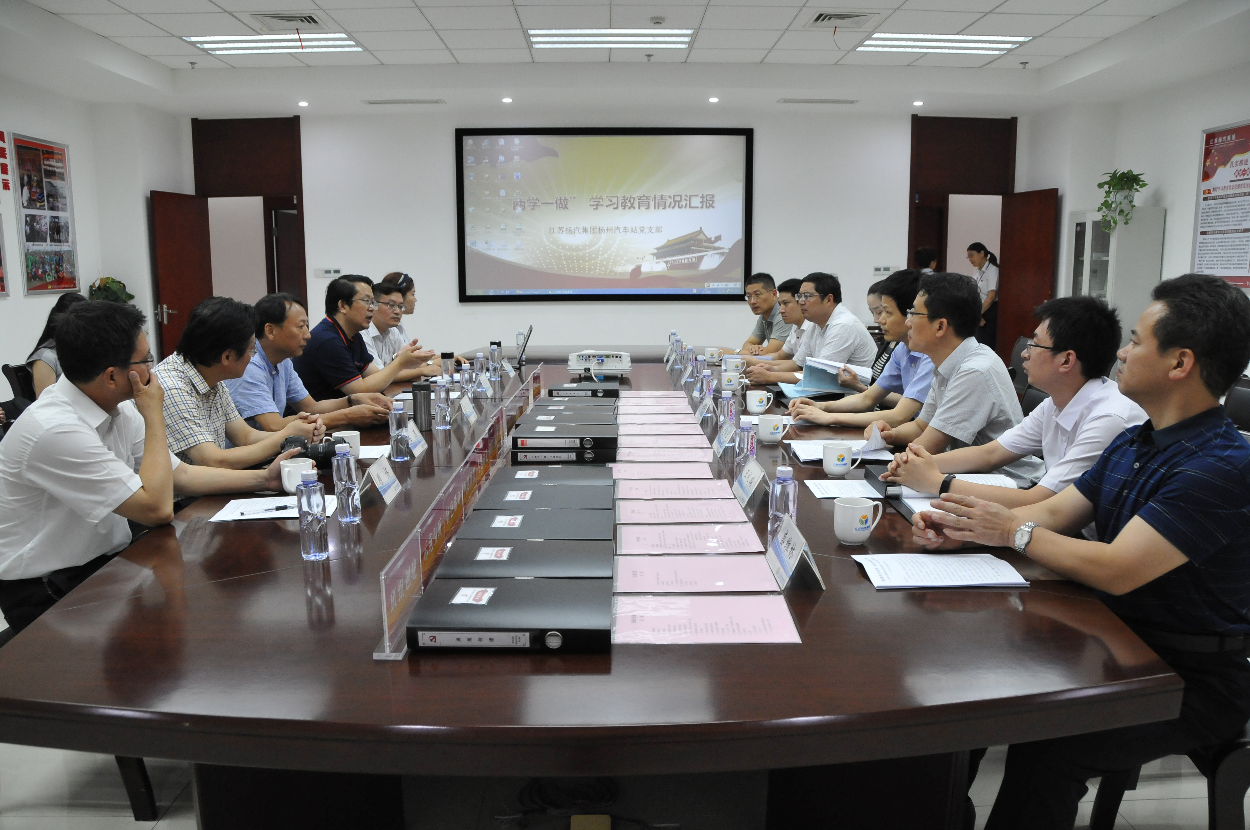 陸部長(zhǎng)一行實(shí)地查看了揚(yáng)州站黨支部的黨員活動(dòng)室,并在活動(dòng)室與揚(yáng)州站黨支部的同志進(jìn)行了座談。揚(yáng)州站黨支部書記凌國軍,向督察組匯報(bào)了揚(yáng)州站黨支部在“兩學(xué)一做”推進(jìn)過程中,如何圍繞企業(yè)轉(zhuǎn)型升級(jí)開展黨建工作的體會(huì)和成績(jī)。督查組還認(rèn)真查看了支部工作臺(tái)賬資料。督察組表示,揚(yáng)州站黨支部在“兩學(xué)一做”學(xué)習(xí)教育過程中,活動(dòng)豐富、臺(tái)賬健全、效果明顯,看到基層支部能將“兩學(xué)一做”工作這樣抓實(shí)做細(xì)感到非常欣慰。