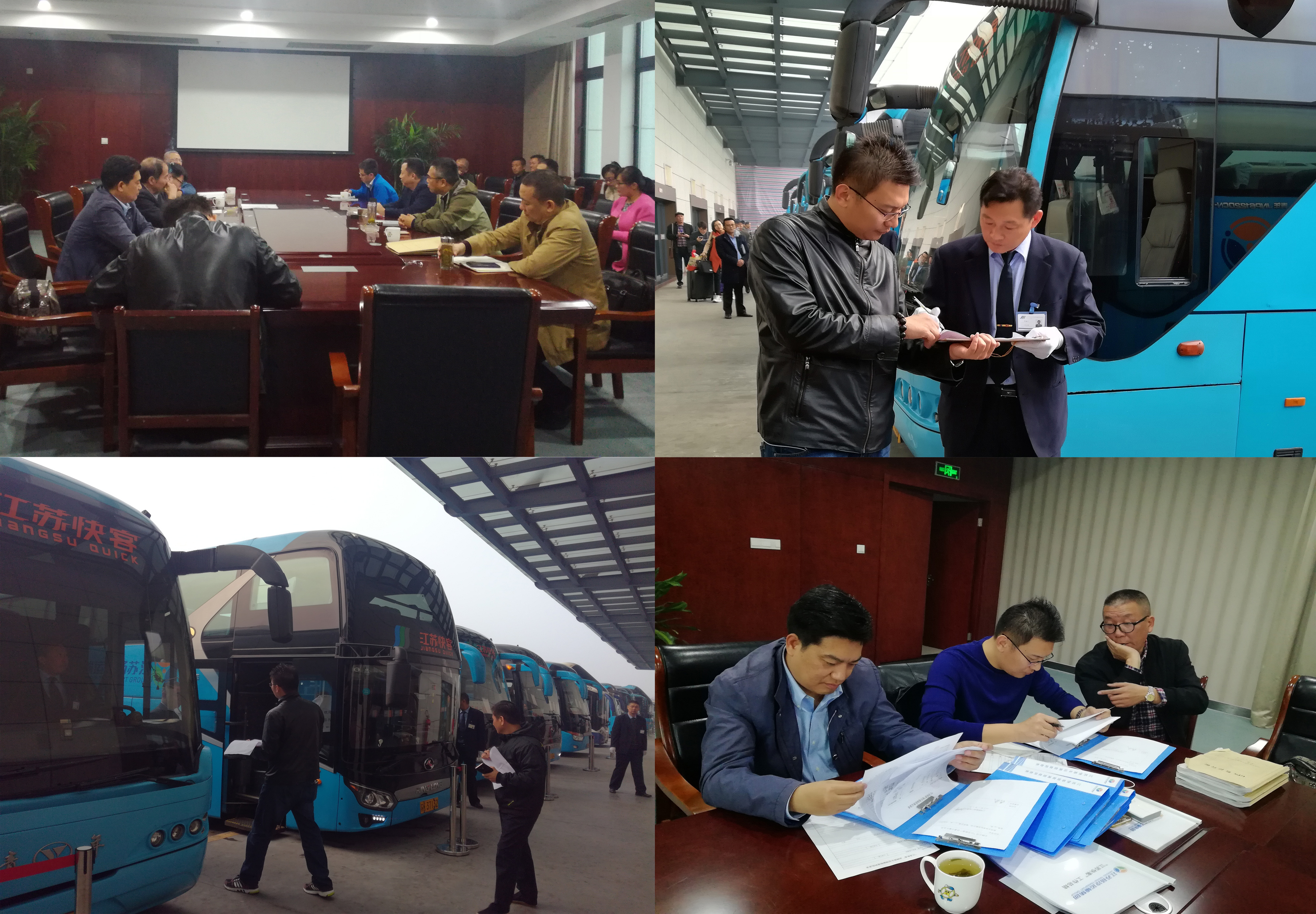 13日下午,檢查組聽取了我司關于“江蘇快客”品牌班車創(chuàng)建、維護及管理工作情況的匯報,并對自查、互查臺帳、服務質量旅客意見處理、缺班誤班記錄、車站滿意率調查表及監(jiān)控登記臺賬等資料進行詳細檢查。14日早晨六點半,檢查組分兩路奔赴西部客運樞紐和汽車東站,現(xiàn)場檢查“江蘇快客”品牌班車的車容車貌、硬件設施、駕駛員安全喊話及服務規(guī)范等,并對照《“江蘇快客”現(xiàn)場考核評分標準》逐一打分。