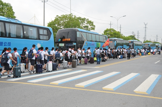江蘇揚汽集團承擔(dān)了此次新生運輸任務(wù),由旅游出租分公司牽頭,抽調(diào)快客、快鹿等各有車單位的大客車38輛,運送樹人中學(xué)師生近2000人。