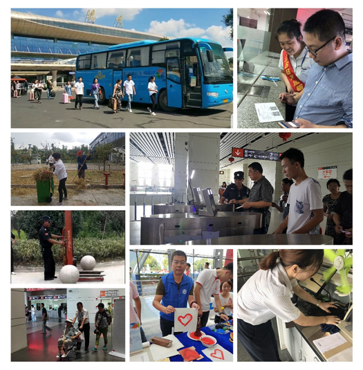 車站各班組分工協(xié)作打掃各自責(zé)任區(qū)域,清掃工作臺(tái)、參加"志愿服務(wù) 美好你我他"第三屆江蘇志愿服務(wù)展示交流活動(dòng)、清掃路邊綠化帶、噴灑藥水、除雜草滅蟲(chóng)害、整理通道入口、設(shè)備設(shè)施維護(hù)、消防安全檢查、身份實(shí)名驗(yàn)證、檢查危險(xiǎn)禁運(yùn)物品、檢查客車安全帶、為特殊旅客提供一站式服務(wù)、熱情引導(dǎo)購(gòu)票、候車,征詢旅客意見(jiàn)、開(kāi)展問(wèn)卷調(diào)查,以整潔的站區(qū)環(huán)境、良好的精神風(fēng)貌和優(yōu)質(zhì)的候乘服務(wù)當(dāng)好東道主,文明迎盛會(huì)。