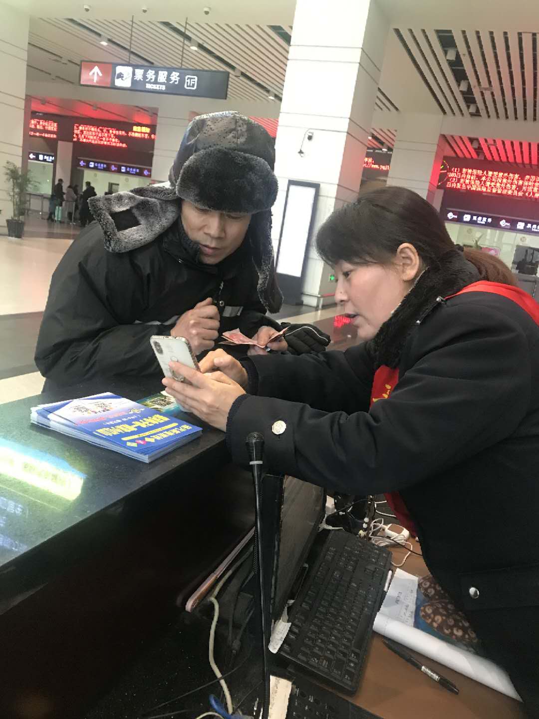 21位在揚州某工地打工的安徽無為縣農(nóng)民工,昨天工地開始放假,于是今天大家集中提前返鄉(xiāng)。得知情況后,班長尹海霞便帶領(lǐng)工作人員熱情地幫助大家購買起票來,為節(jié)約因排隊造成的時間緊張,尹班長隨即吩咐班組人員利用工友的手機,幫助農(nóng)民工進行網(wǎng)上購票,不到二十分鐘,解決了農(nóng)民兄弟的購票問題。隨行中一位已在揚州打工三個年頭的“小工頭”夏師傅感慨萬千,動情地說:“沒想到今年春運前買車票這么容易,多虧了車站工作人員的幫忙”。