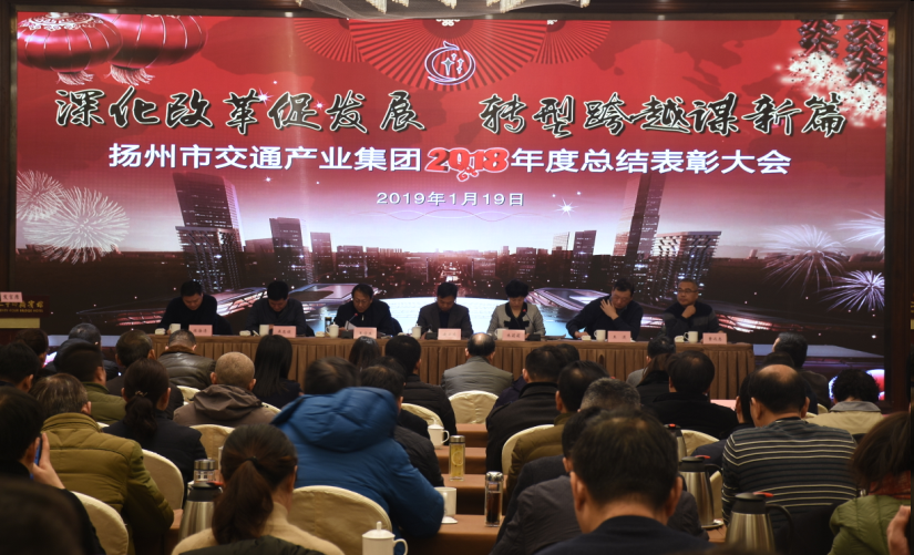 1月19日上午,交通產(chǎn)業(yè)集團2018年度總結表彰大會在二十四橋賓館玫瑰廳勝利召開。交通產(chǎn)業(yè)集團領導班子、各二級單位領導班子、中層干部、勞模代表、青年骨干等近二百人參加會議。