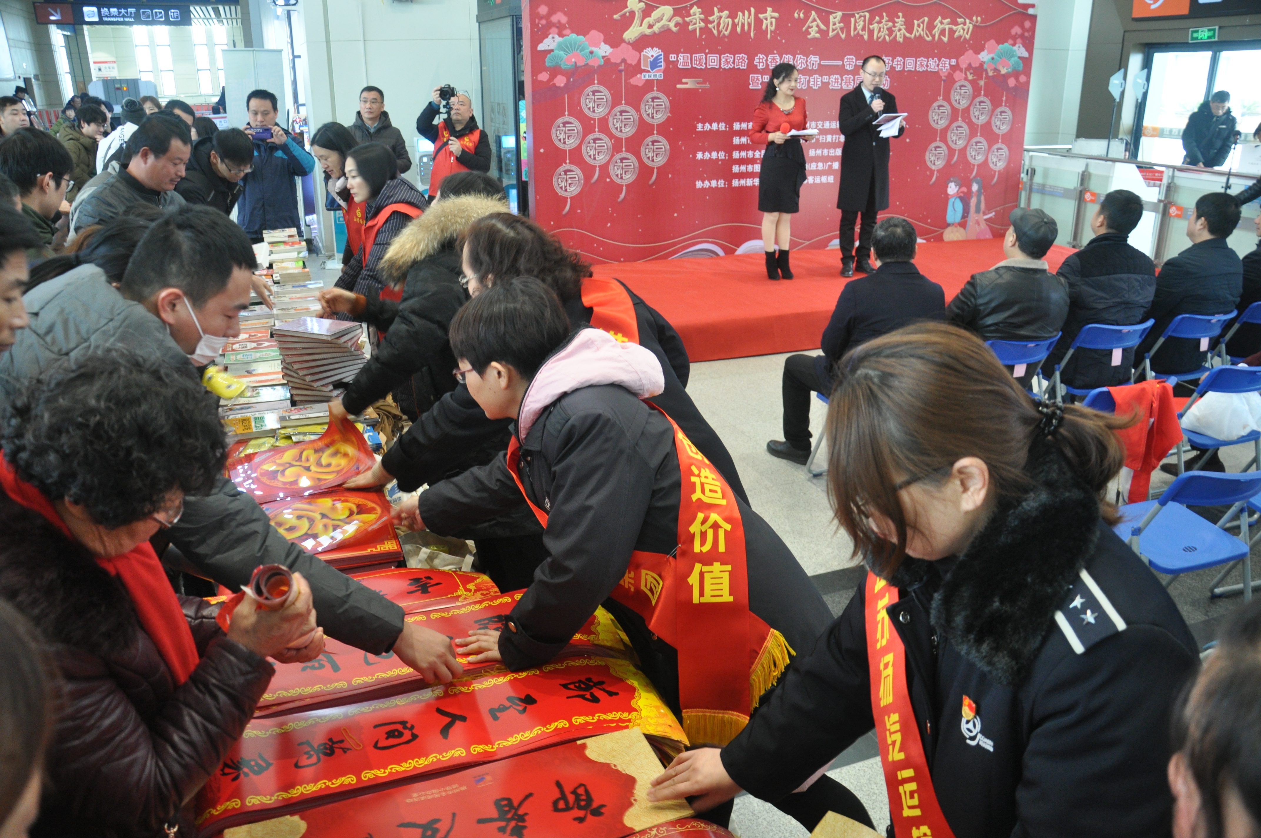 2020年1月14日上午,揚州市“全民閱讀春風行動”暨“掃黃打非”進基層活動在揚州汽車站候車大廳隆重舉行。