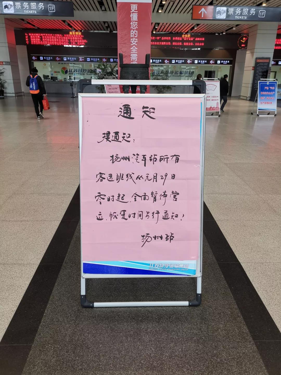 為進(jìn)一步配合我市做好新型冠狀病毒感染的肺炎疫情防控工作,遏制疫情通過(guò)交通渠道擴(kuò)散傳播,揚(yáng)汽集團(tuán)根據(jù)揚(yáng)州疫情防控工作需要,決定從2020年1月29日0時(shí)起,暫停揚(yáng)州汽車站、揚(yáng)州汽車東站及江都汽車客運(yùn)站的運(yùn)營(yíng),停發(fā)所有客車班線,暫停所有包車客運(yùn)業(yè)務(wù)。