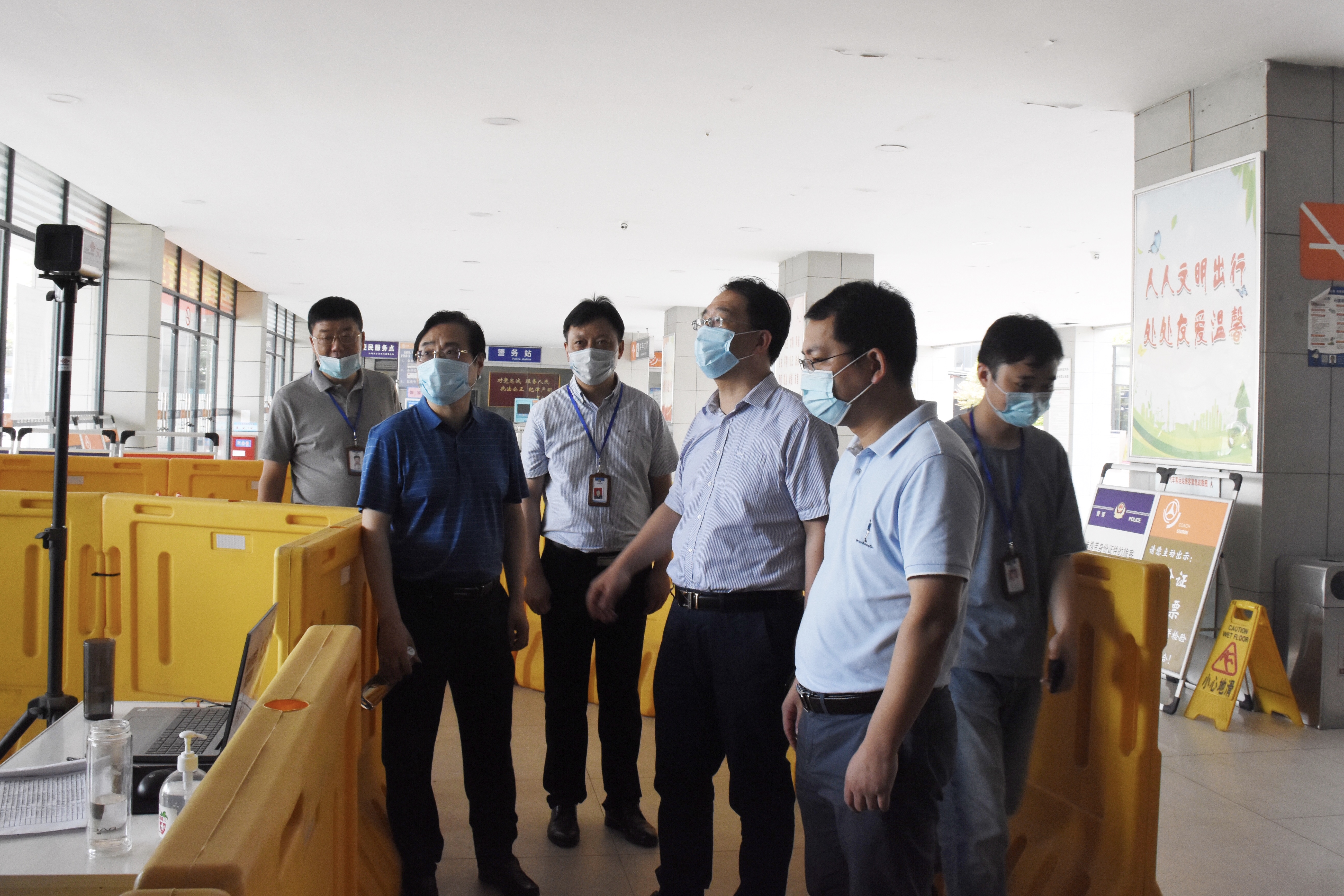 督查組對車站嚴(yán)格落實上級各項管控措施并取得的成效表示肯定,同時,要求相關(guān)工作人員要進(jìn)一步提高政治站位,落實主體責(zé)任,切實抓緊抓實抓細(xì)抗疫情、穩(wěn)經(jīng)濟(jì)、謀發(fā)展各項工作。一是聚焦常態(tài)化疫情防控,緊盯外防輸入,內(nèi)防反彈,切實做好各類公共場所和運(yùn)輸工具勤通風(fēng)、勤消毒,降低疫情傳播風(fēng)險。二是進(jìn)一步提振信心,迎難而上,努力克服疫情給企業(yè)生產(chǎn)經(jīng)營帶來的嚴(yán)重影響,全力以赴抓好復(fù)工復(fù)產(chǎn)工作,切實做到疫情防控和生產(chǎn)經(jīng)營,兩手抓、兩不誤。
