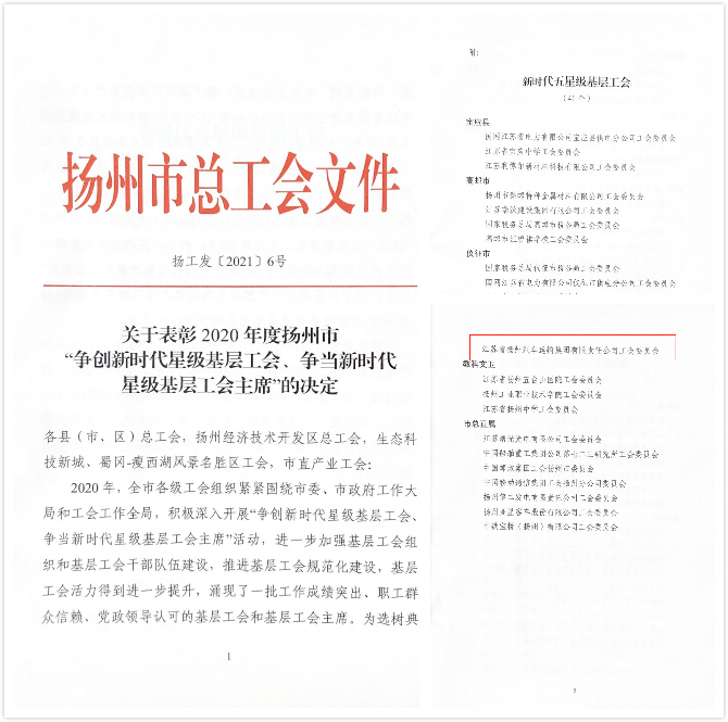 近日,市總工會下發(fā)《關于表彰2020年度揚州市“爭創(chuàng)新時代星級基層工會、爭當新時代星級基層工會主席”的決定》和市建設工會下發(fā)《關于表彰2020年度工會工作先進單位、先進個人的決定》,揚汽集團工會榮獲揚州市“新時代五星級基層工會”和建設工會“優(yōu)秀基層工會”稱號,工會主席獲評揚州市“新時代五星級基層工會主席”,工會干部獲評建設工會“優(yōu)秀工會干部”。