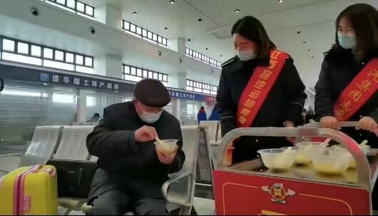 一位老先生端著湯圓,連聲說謝,在品嘗了湯圓之后,露出滿臉笑容,滿口稱贊,稱贊我們的工作熱情、溫暖,讓身在異鄉(xiāng)的旅客們也感受到家的溫馨。在給旅客送溫暖、送祝福的同時,車站領(lǐng)導(dǎo),也未忘記一線職工,也給他們送上了甜甜的湯圓和節(jié)日祝福,祝他們生活團團圓圓,日子甜甜蜜蜜。