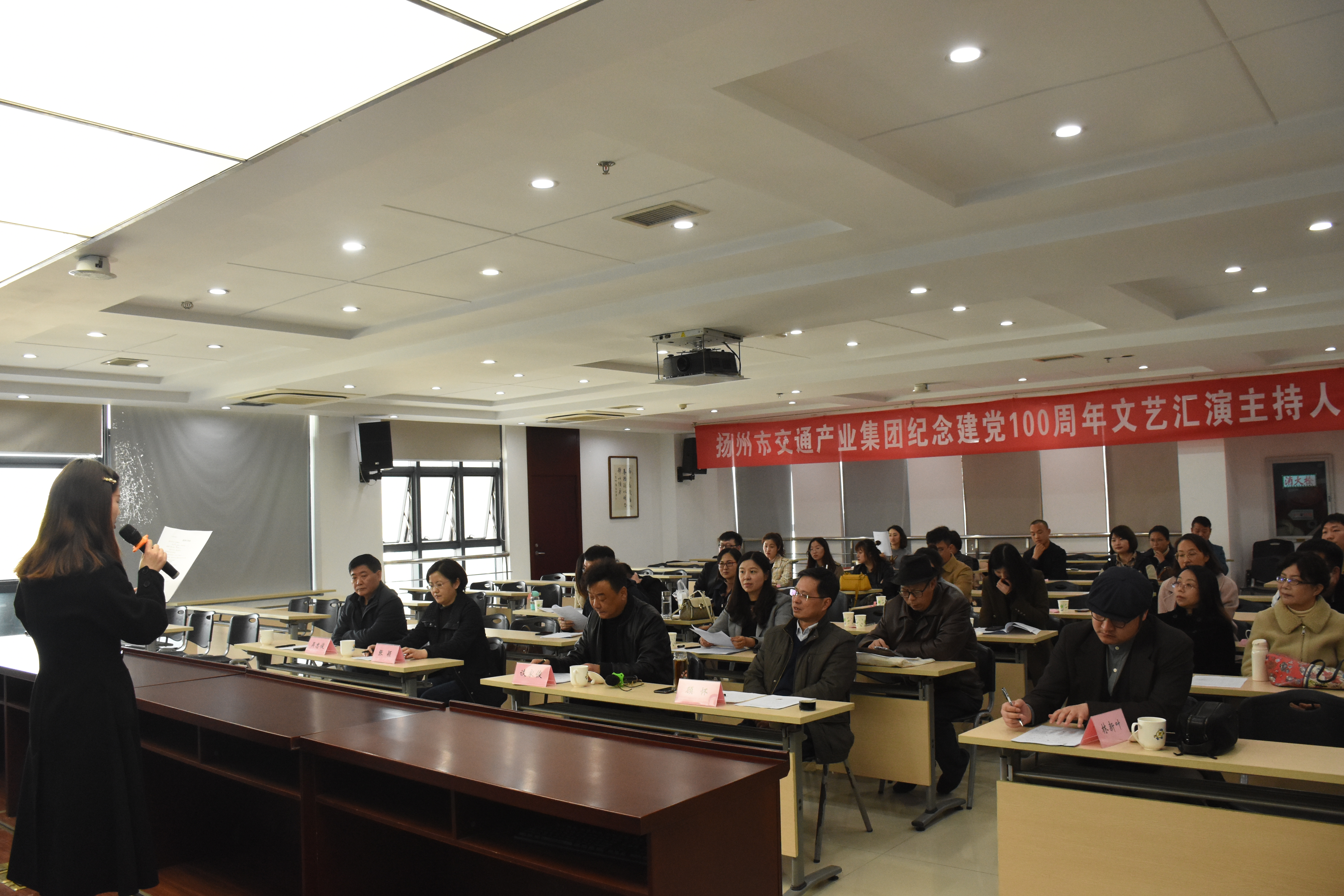 為籌備好慶祝建黨100周年文藝匯演,4月8日下午,文藝匯演的主持人選拔賽在揚汽集團教培中心舉行,來自交通產業(yè)系統(tǒng)內的19名參賽選手在這里進行了激烈的角逐。交通產業(yè)集團黨委副書記張穎,副總經理、工會主席吳忠俊,揚汽集團黨委副書記、工會主席顧懷、導演談家俊擔任本次主持人選拔賽的評委。