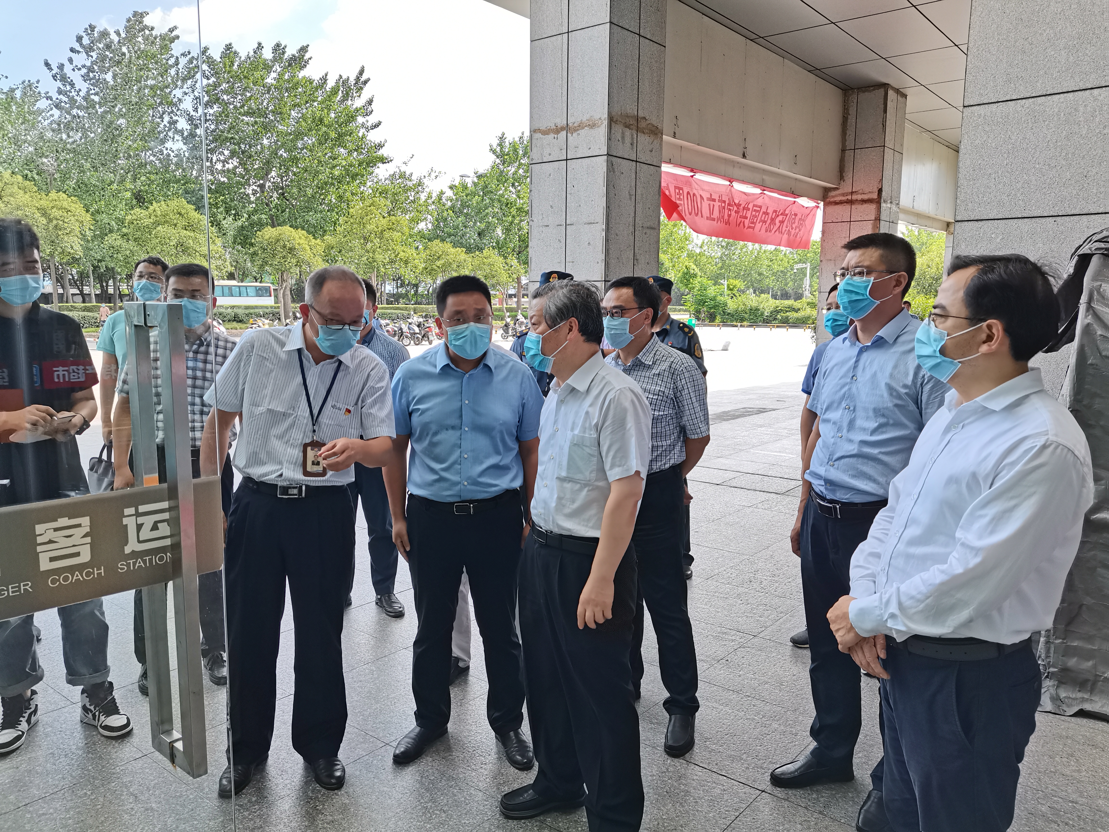 7月23日下午,市委副書記、統(tǒng)戰(zhàn)部部長(zhǎng)孔令俊帶隊(duì)來汽車東站檢查疫情防控工作,市人大常委會(huì)副主任范天恩、廣陵區(qū)委書記朱勇、區(qū)委副書記李斌、副區(qū)長(zhǎng)葉浩等領(lǐng)導(dǎo)陪同檢查。