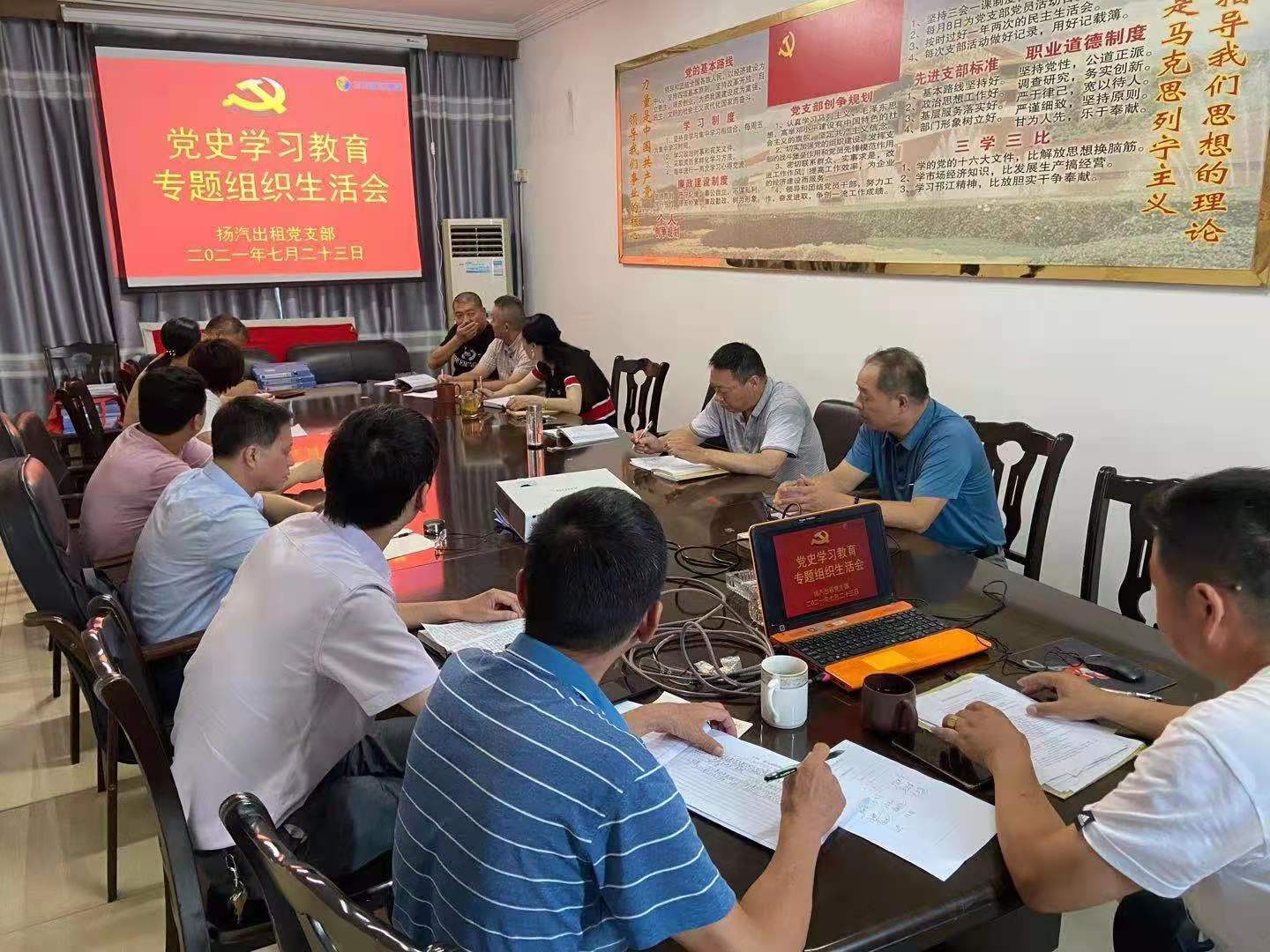 7月23日,揚汽出租黨支部召開黨史學習教育專題組織生活會,揚汽集團黨委副書記、工會主席顧懷出席會議。